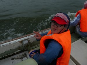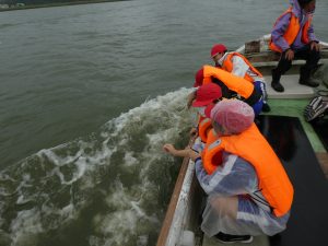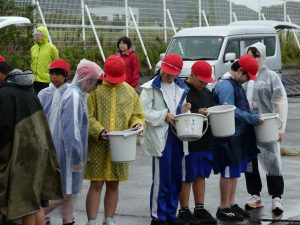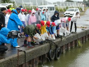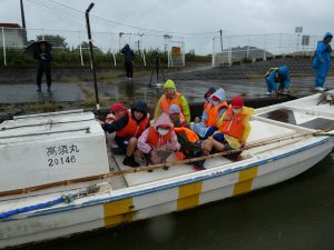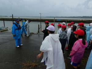 社会科の学習「水産業のさかんな地域」に関連して、行方市の漁業や漁業者が取り組んでいる水産資源の保護について学ぶことをねらいとして水産業体験教室を行いました。初めは、白浜漁港で船に乗り、うなぎの稚魚を放流しました。雨の中でしたが、子どもたちは初めての体験でワクワクしていました。