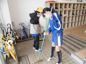 ボランティア委員会の児童が、週2日、朝昇降口を掃除してくれています。傘立てをずらしながら丁寧に掃除してくれました。
