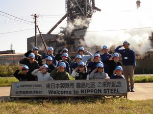 工場の歴史や様子、鉄の製造過程の説明をしていただき、その後工場を見学しました。バスで敷地内を見学したあと、熱延工場を歩いて見学しました。厚い鉄の塊が徐々に薄くなっていく様子を間近に見ることができました。
