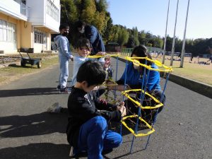 11月21日 1年生あさがおリース作り1年生が大切に育てたあさがお、花を咲かせ、種を取り、すっかり茶色のつるだけになりました。今日は、つるを使って、リース作りに挑戦しました。きれいな飾りをつけて、素敵なリースに仕上がりました。