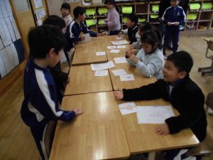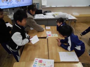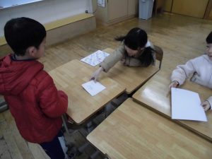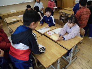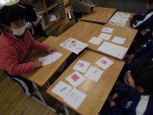 「いらっしゃいませ。」「おすすめは、こちらです。」「○○はありますか?」とていねいな言葉をつかって、やりとりをする練習もしました。 「同じお店を考えた友達とグループでやったら楽しそう!」「お金も用意したら面白くなりそう!」と協力したり、他の教科とのつながりを考えたりしながら活動することができました。 Comments are closed. |
