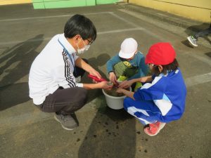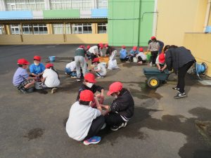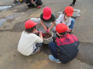 温かい1日でした。まだ冷たい水でしたが、とてもきれいにお芋を洗うことができました。