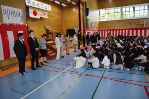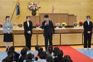 4月7日 令和8年度始業式・入学式小雨が降る中ではありましたが、暖かな春の空気に包まれ、令和8年度の入学式・始業式を実施しました。新たに22名の新入生が加わり、全校児童がそろって新年度のスタートを切ることができました。入学式では、少し緊張しながらも元気よく返事をする新入生の姿が印象的でした。また、始業式では校長先生より「あいうえお」に込めた大切な話があり、子どもたちは真剣に耳を傾けていました。新しい学年への期待に胸をふくらませ、明るく前向きな一歩を踏み出した一日となりました。