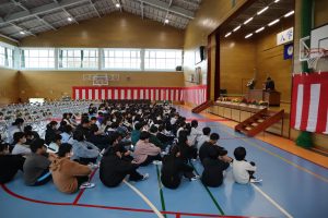 小雨が降る中ではありましたが、暖かな春の空気に包まれ、令和8年度の入学式・始業式を実施しました。新たに22名の新入生が加わり、全校児童がそろって新年度のスタートを切ることができました。入学式では、少し緊張しながらも元気よく返事をする新入生の姿が印象的でした。また、始業式では校長先生より「あいうえお」に込めた大切な話があり、子どもたちは真剣に耳を傾けていました。新しい学年への期待に胸をふくらませ、明るく前向きな一歩を踏み出した一日となりました。