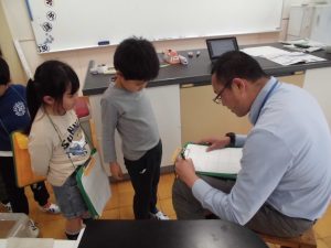 1年生の生活科の学習で、学校にいる先生に名前やお仕事をインタビューする活動を行いました。