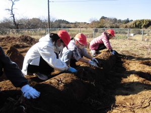 3年生がさつまいも堀りをしました。土の深くまで掘り進み、丁寧に掘り上げていました。