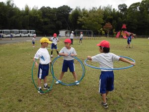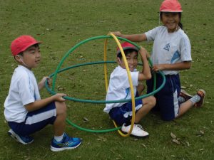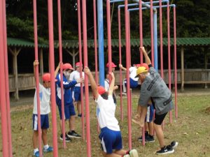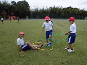 業間運動が行われました。運動しやすい気候になり、縦割り班で、声を掛け合いながら楽しく体力づくりが行われています。