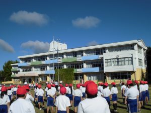 昼休みに、赤組と白組に分かれて応援練習を行いました。