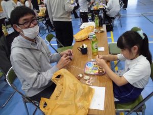 3年生で親子行事が行われました。 初めに、ドッジボールをおこないました。保護者の皆様も本気でプレーして大変盛り上がっていました。その後、クッキーのデコレーションに取り組みました。チョコペンを使いクッキーを素敵に飾り付けていました。 笑顔あふれる素敵な時間を過ごすことができました。