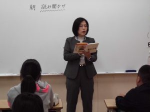 朝の読書タイムに職員による読み聞かせを行いました。 どのクラスも、集中してお話しを聞くことができました。読書の秋です。たくさんのよい本に出会って欲しいと思います。