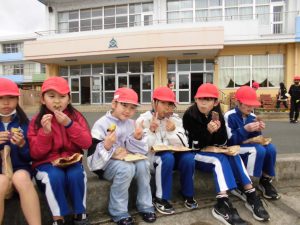 子供たちは、雪が残っているグラウンドで、手や頬を真っ赤にしながら雪遊びをしていました。 また、焼きいも会1日目でした。1・2・3・6年生がお待ちかねの焼きいも会をしました。おみやげ用の焼きいももあり、笑顔あふれる試食タイムとなりました。 4・5年生は12日に焼きいも会をします。