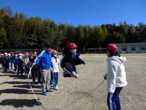 月曜日、木曜日に業間運動で、長なわ8の字跳びに挑戦しています。