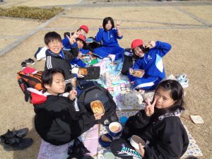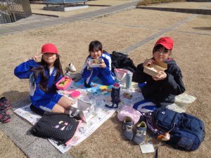 お待ちかねのお弁当の時間です。朝早く起きて準備してくれたお家の方に感謝していただきます!