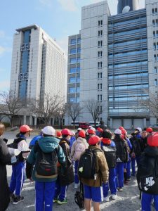 茨城県庁に着きました。予想以上におおきな庁舎に、さすがの4年生も少し緊張気味です・・・。