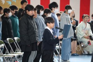 暖かな日差しに包まれる中、29名の卒業生が本校を巣立ちました。式では、呼名への凛とした返事や姿勢など、一人一人の立派な態度が印象的でした。在校生は感謝の思いを歌や言葉に込めて届け、卒業生も六年間の成長と仲間への思いをしっかりと表現しました。地域や保護者の皆様の温かなまなざしに見守られ、心を一つにした素晴らしい卒業式となりました。新たな門出を心より祝福します。