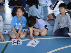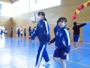 新入生を迎える会を行いました。6年生が中心となって企画・運営し、全校児童で1年生を温かく迎えることができました。 ゲームでは、全員にひらがな一文字が書かれたカードを持って「言葉作りゲーム」に挑戦しました。なかには、市長さんの名前を作り上げたグループもあり、会場は大いに盛り上がりました。1年生も終始笑顔で参加し、学校全体が温かい雰囲気に包まれました。 これからも、学年をこえて仲よく関わり合い、笑顔あふれる学校をみんなでつくっていきたいと思います。