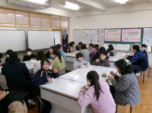 一昨日は6の1が、今日は6の2が、それぞれ本校職員を招待して、おいしい手作りのデザートを振る舞うとともに感謝の気持ちを伝える会を開いてくれました。おいしかったし、うれしかったし で、心もおなかも満たされました。