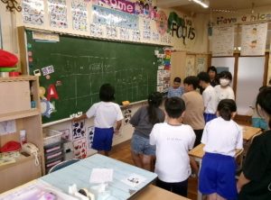 班の仲間たちと楽しくレクリエーションをして交流しました。5年生が会場(各教室)を準備し、6年生は、1年生をお迎えに行ったり、レクの説明をしたりと大活躍。そんな姿を見て、成長していきます。