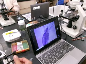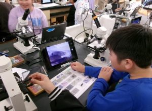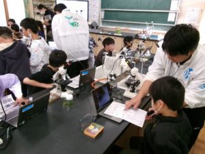 今日は、3年生のために霞ヶ浦環境科学センターから、たくさんの方にご来校いただき、出前授業をしていただきました。霞ヶ浦にすむプランクトンの顕微鏡観察をして、理科室内は大盛り上がりでした。プランクトンと水環境との関わりを知り、環境を守るために、「自分たちにできること」を考えていきます。