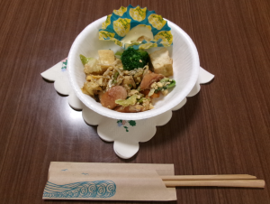 調理実習をした6年生のグループが、職員室におすそ分けしてくれました。野菜の食感もよく、味付けもバッチリでした。ごちそうさまでした。