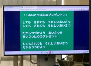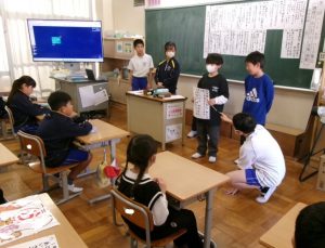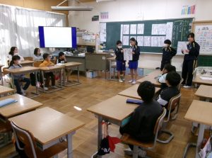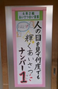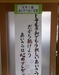 ハート・トゥ・ハート集会(たてわりはん活動)がありました。「麻生小学校が、今よりも さらに元気なあいさつのひびきわたる学校にしたい」と各班ごとに分かれて、学級で話し合って決めた「あいさつ合い言葉」を発表し合いました。合い言葉を 歌にしてくれた学級もありました ♬「あいさつ」はコミュニケーションのはじまり。時と場に応じたあいさつのできる人をめざしましょう。