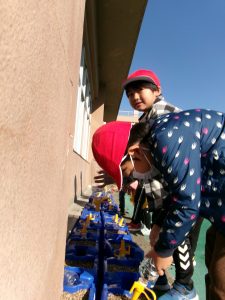 校庭ではサッカーをしたり、ダンスをしたり、ブランコ、ジャンプ?していたりと久しぶりに会えた友達と一緒に、ニコニコ😊😄です。