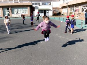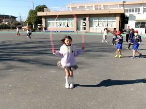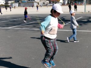 なわとび検定に向けて、みんな張り切って練習しています。二重跳びや二重綾跳び(はやぶさ?とかつては呼んでいたけど・・・)、後ろ跳びなど、みんな上手です。校長先生も華麗にキメていました✨フラフープ跳び?側転など、今日もみんな元気です。