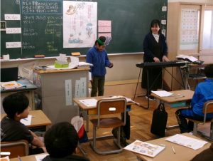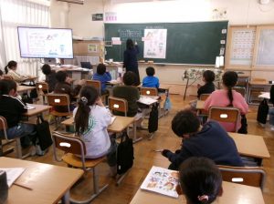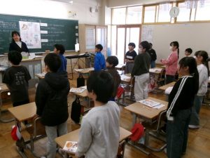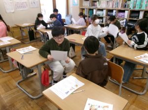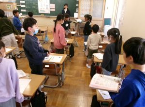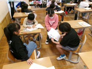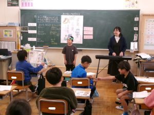 2年1組教室から、楽しげな歌声が聞こえてきました。ねずみ さん、ふくろう さん、みつばち さんの様子が伝わるように歌います🎤。