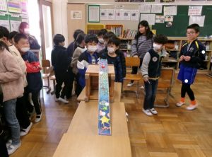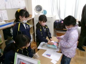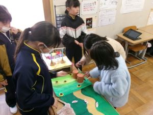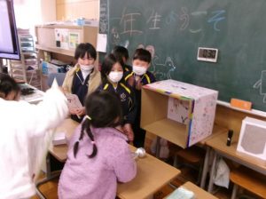 今日は、3年生の教室に 1年生が招待されて来ていました。3年生が理科の学習を生かし、チームに分かれて体験型ブースを展開していました。「いらっしゃいませ~」と1年生を呼び込んで、優しくやり方を説明し、楽しんでもらうことができました。次は、保護者の皆様もお楽しみに👦👧。