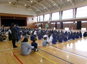 避難訓練を行いました。児童のみなさんは、直接不審な人物と遭遇してはいないと思いますが、緊急の合い言葉の確認、避難の仕方、実際にどのように行動したらよいかを考える機会となったと思います。訓練後は体育館に集合し、スクール・サポーターさんからご講話をいただきました。「自分の身は自分で守る」しっかり判断して行動できるようになりたいですね。
