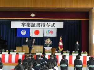 暖かい太陽の日差しが注ぐ中、晴れやかに卒業式が執り行われました。卒業生の気持ちのこもった返事、まっすぐな瞳、堂々とした立ち振る舞い、心動かされる卒業式でした。新たなステージでの活躍を心からお祈りしています。(よい春休みを!)