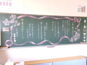 5時間目は、みんなで学校をきれいにしようと大掃除をしてくれました。1年間、お世話になった教室、校舎への感謝の思いが伝わります。放課後、がらんとなった教室からは、さびしさも・・・。