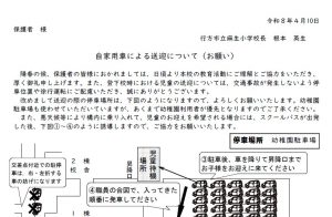自家用車での送迎について、本校では本文書のようにお願いをしております。構内における最徐行運転(10km/h)、スクールバス運行時の正門からの乗り入れ禁止、幼稚園駐車場をお借りする際のマナー(※幼稚園フェンス側への駐停車はしない)など、児童・園児の安全のため、また、近隣住民の方への迷惑にならないようにするため、共通理解とご協力をお願いいたします。