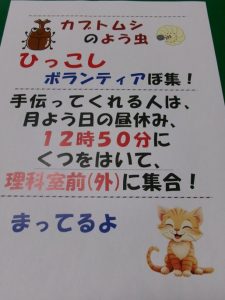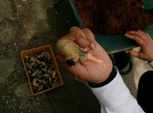 たくさんのカブトムシの幼虫をいただきました。たくさんいて、発泡スチロールのお家から脱走を企てる状況を見かねて、堆肥袋等に土を入れたアパートに引っ越す作業をすることになりました。ボランティアで集まってくれたみなさん、お手伝い ありがとうございました。立派な成虫になってくれるといいですね。
