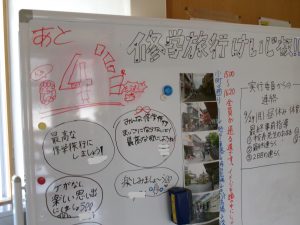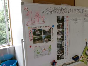 来週に迫った修学旅行に向けて、実行委員が毎日ホワイトボードを更新しながら、お知らせをしてくれています。友達との大切な思い出をつくると共に、歴史、文化などの違いを知る素敵な機会にしてください。