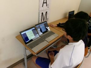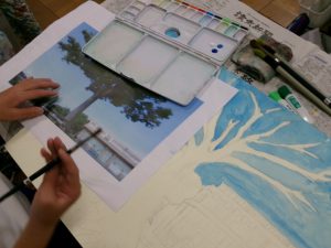 アクアワールド水族館🐟見学を終え、帰路に着きます。 みんな とっても元気です! イルカ🐬ショーを楽しんで、外でペンギン🐧さんのお散歩を見た後、お弁当🍙をいただきました。美味しいお弁当を用意してくれたお家の方に感謝です! 6年生は図工の授業で風景画を描いていました。水彩絵の具で、色を混ぜ合わせたり、水で薄めたりしながら、風がながれるような爽やかなワンシーンを切り取った作品を制作中でした。 こちらの6年生は外国語の授業です。タブレットを使って、プレゼンテーションを撮影していました。This is~. I like~. Do you know ~?などの表現を使って、学校紹介動画の撮影でした。