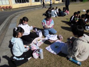 本日はお弁当の日でした。お天気の恵まれ、芝生のグランドでお弁当を食べる学年が多かったです。笑顔いっぱいで美味しいお弁当を食べることができました。 お弁当の準備ありがとうございました!!