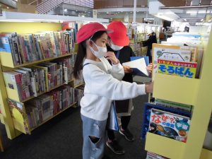 館内では、図書館についての説明を受け、館内を案内していただき、最後に本を実際に借りました。利用のルールを守って、過ごすことができました。