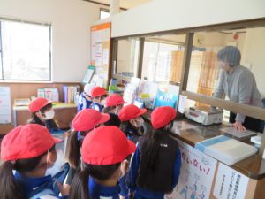 2年生が生活科の校外学習で、まちたんけんに出かけました。駐在所と郵便局を訪問しました。訪問場所はそれぞれ各自で決め、2グループに分かれ見学しました。後日、まとめをして互いの見学場所について伝え合う授業を行います。