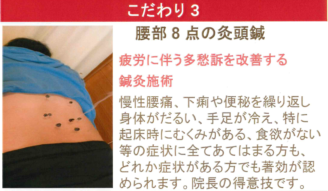 これらに対して、丁寧な問診、触診を行い、的確な鍼灸施術を施します。