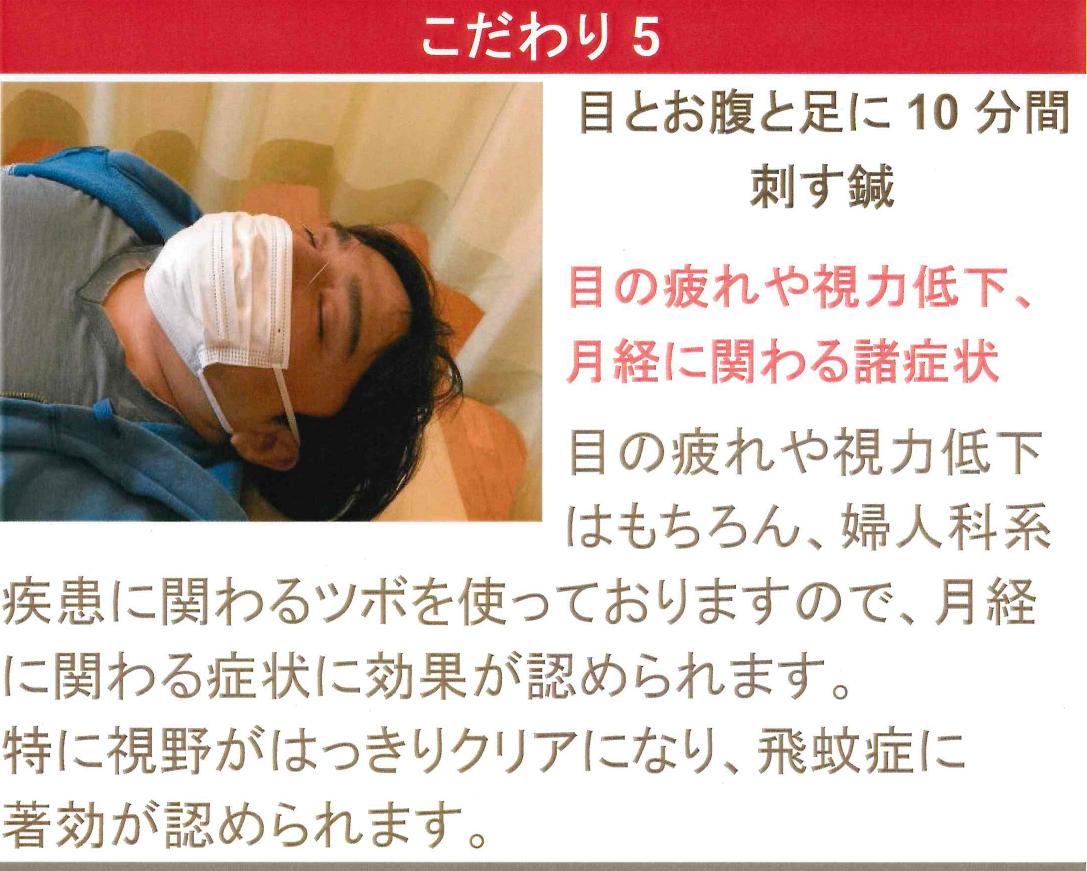 当院は、鍼灸の利点をフルに発揮し、患者様のご要望に応じた施術を行い徹底した満足度を追求しております。